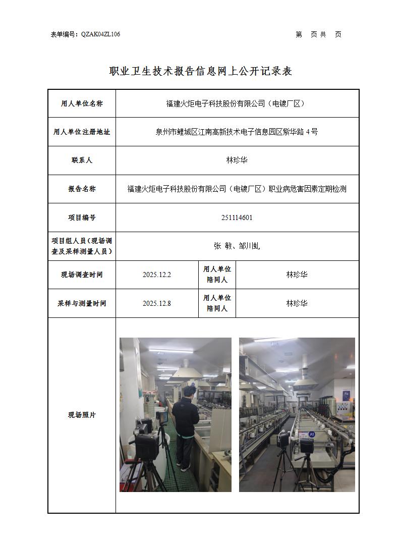 福建火炬電子科技股份有限公司(電鍍廠區(qū))
